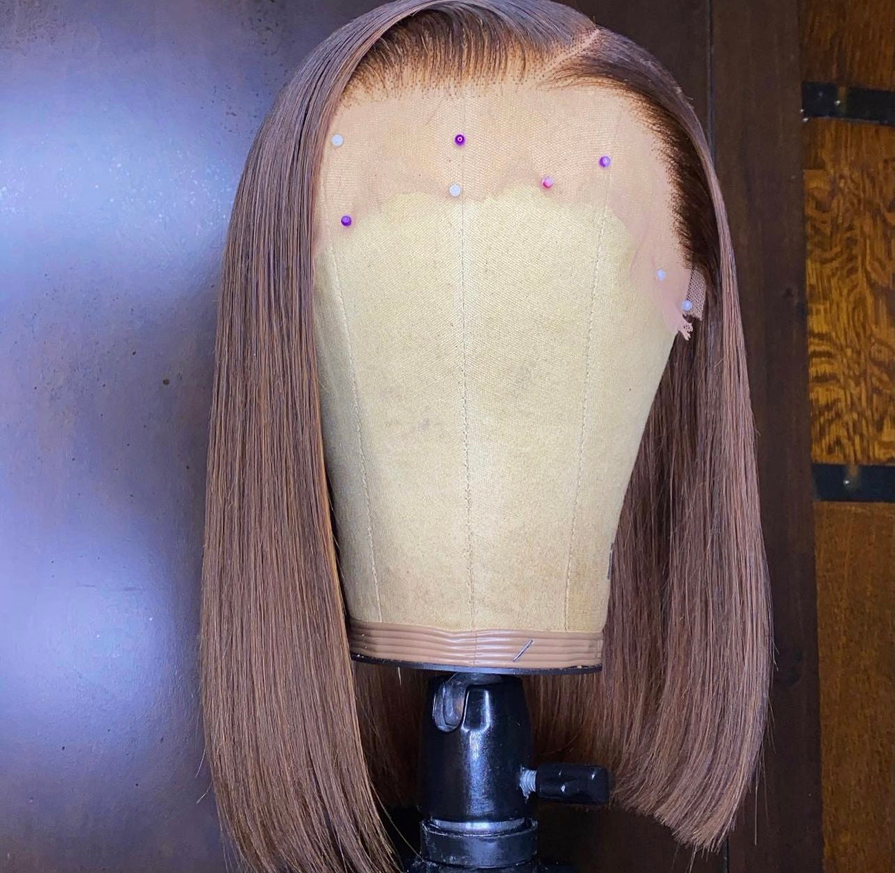 Our “Hershey Kiss ” 13x4 unit is machine made for longevity and durability, styled with a side part and chocolate brown shade ! She is definitely a good fit for someone loves a pop of color but can not wear color to work