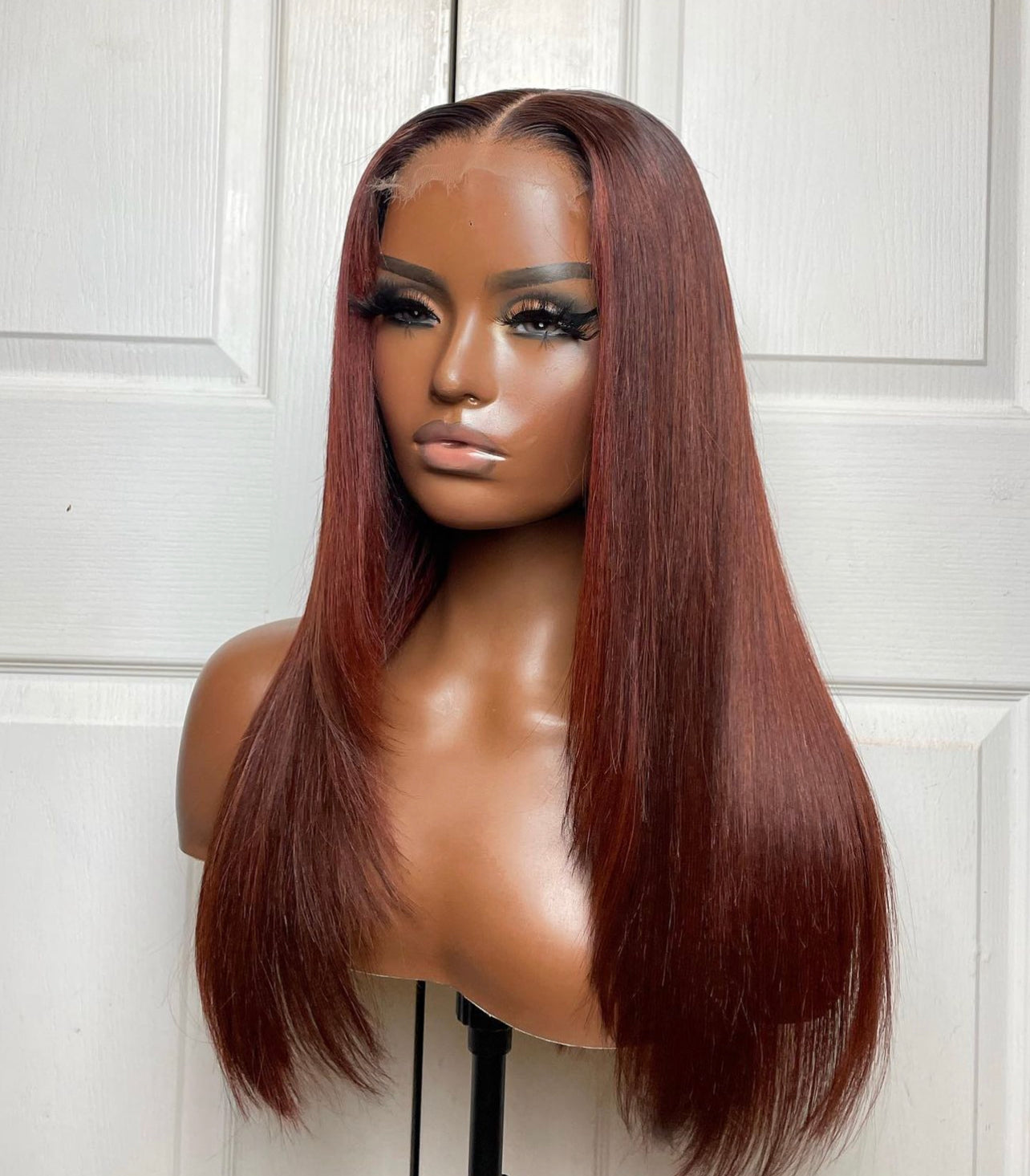 Our “Phoenix” 5x5 unit is machine made for longevity and durability, styled with a bust down middle part and fiery copper tones ! She is definitely a good fit for someone who enjoys minimal maintenance with a pop of color